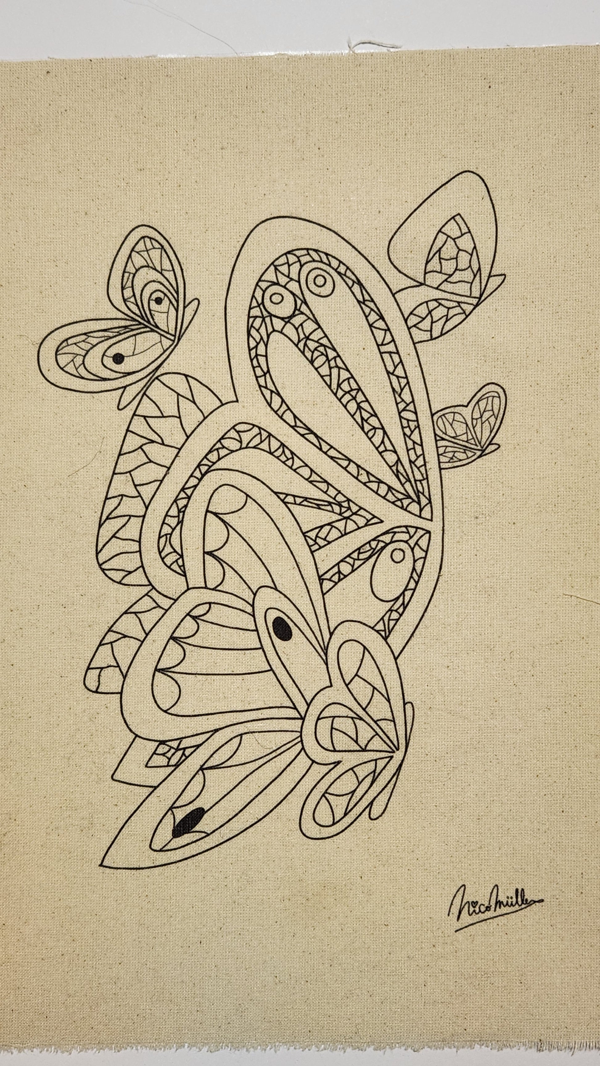 Este diseño creado e ilustrado por mi esta estampado en tela crea cruda, tamaño A4 (21,5 x 29 cm aprox.), ideal para experimentar con distintas técnicas creativas.