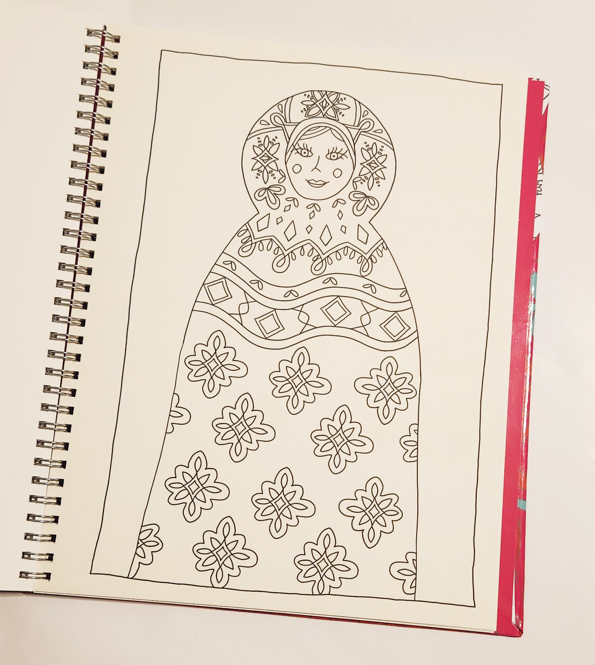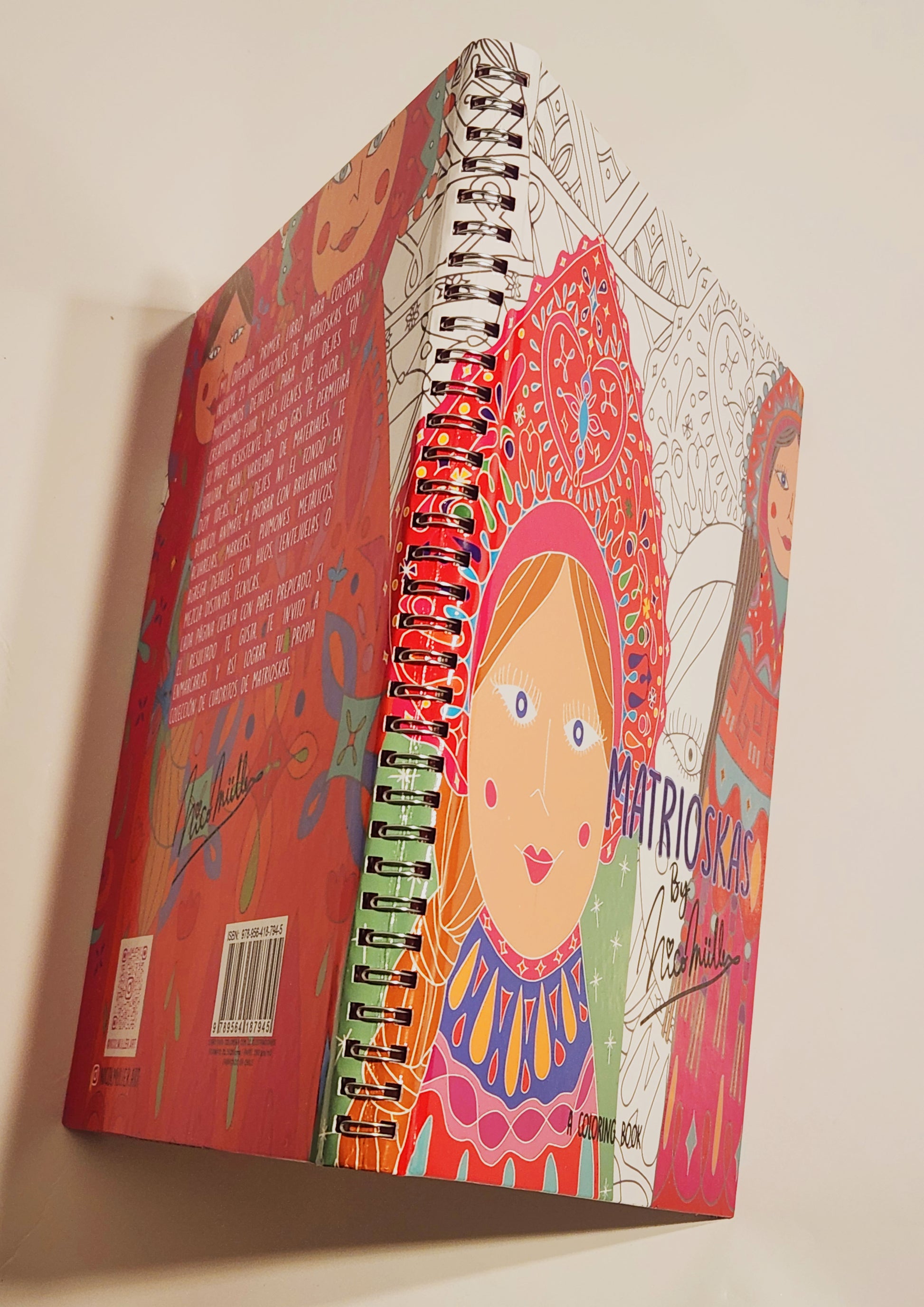 MI QUERIDO LIBRO PARA COLOREAR CON ESPIRAL ESCONDIDO, SUMAMENTE CÓMODO PARA PINTAR, TIENE UN TAMAÑO DE 21.5 X 28 CM INCLUYE 21 ILUSTRACIONES DE MATRIOSKAS LLENAS DE DETALLES EN SUS ROPAS PARA QUE DISFRUTES PINTADO Y DESARROLLANDO TU CREATIVIDAD. CADA PÁGINA DE PAPEL DE 280 GRMS TEXTURADO OFRECE UNA CALIDAD SUPERIOR OTORGANDO LA POSIBILIDAD DE UTILIZAR DISTINTOS MATERIALES Y TÉCNICAS PARA DAR COLOR Y VIDA A TU LIBRO. POR EJEMPLO ACUARELAS , LÁPICES SCRIPTO O MARKERS, SE PUEDEN UTILIZAR SIN QUE LA HOJA SE TRASPASE O SE ROMPA. CUENTA CON HOJAS PREPICADAS PARA QUE PUEDAS ENMARCAR EL RESULTADO Y HACER TU PROPIA COLECCIÓN DE MATRIOSKAS O REGALARLAS.