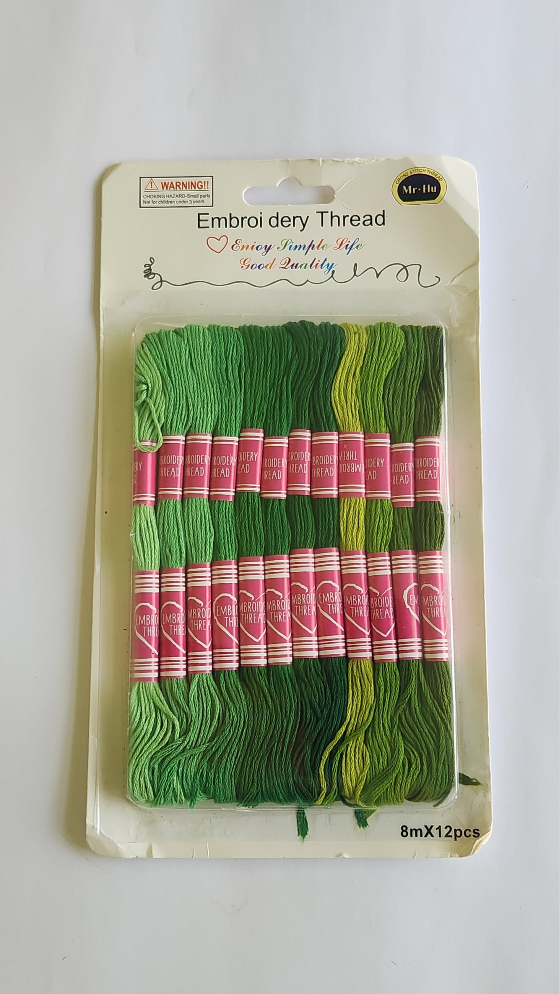 SET 12 HILOS PARA BORDAR TONOS VERDES